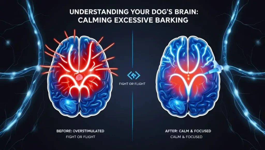 When a dog starts barking uncontrollably, they enter a hyper-alert state. It’s like a reflex—they physically can’t stop or process commands.